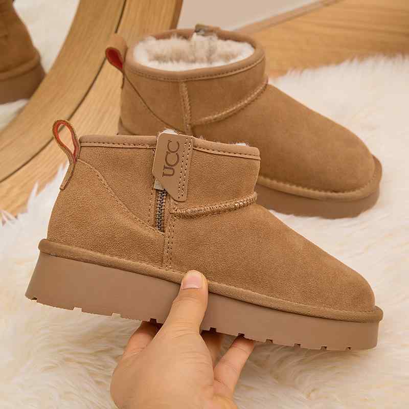 雪地ブーツ レディース 厚底 短筒 ムートンブーツ スノーブーツ ラウンドトゥ 4cmヒール 羊革 ・・・