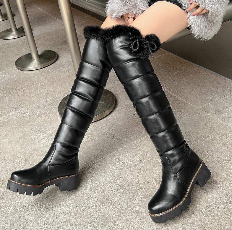 ブラック ホワイト ピンク ムートンブーツ ニーハイブーツ レディース スノーブーツ ロングブーツ ・・・