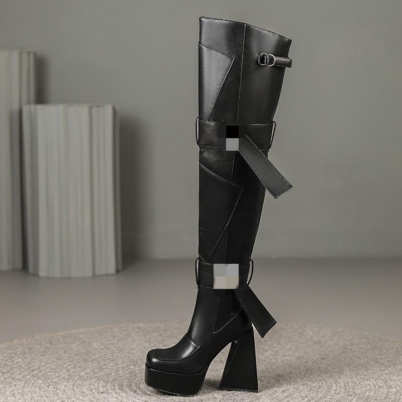 ブーツ レディース ニーハイ オーバーニー スキニーフィットブーツ ストレッチ 伸縮性 厚底 プラッ・・・
