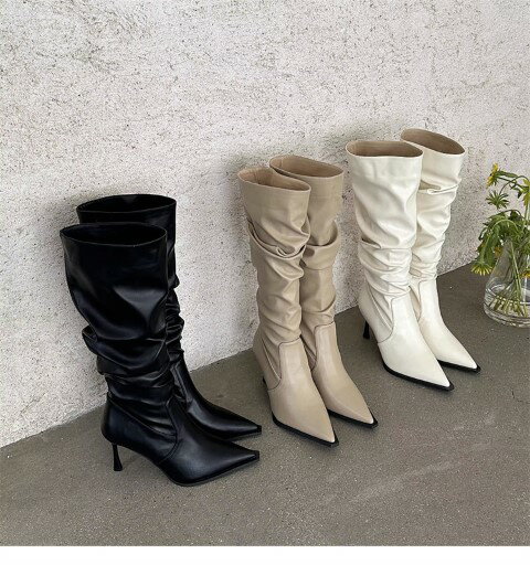 ブーツ レディース 滑り止め 耐摩耗 ロング ニーハイ くしゅくしゅ ポインテッドトゥ ピンヒール ・・・