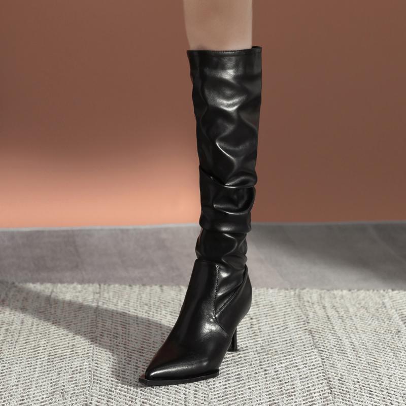 ロングブーツ ニーハイ 気質 皺 高筒 長靴【大きいサイズ レディース 雪道 サイドゴア ヒール ロ・・・