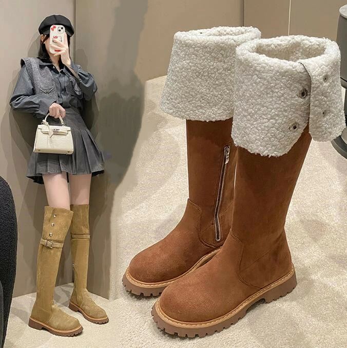 ロングブーツ レディース ムートンブーツ ニーハイブーツ ジョッキーブーツ 秋 裏起毛 ブーツ ロー・・・