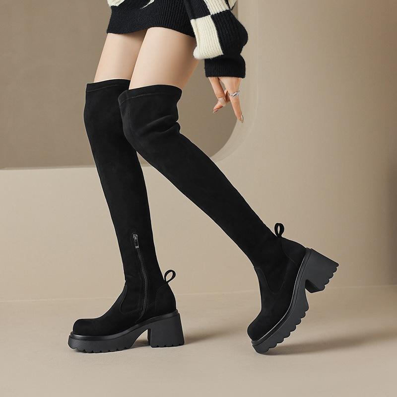 ロングブーツ レディース 秋冬 厚底 プラットフォーム ニーハイ オーバーニー チャンキーヒール 太・・・