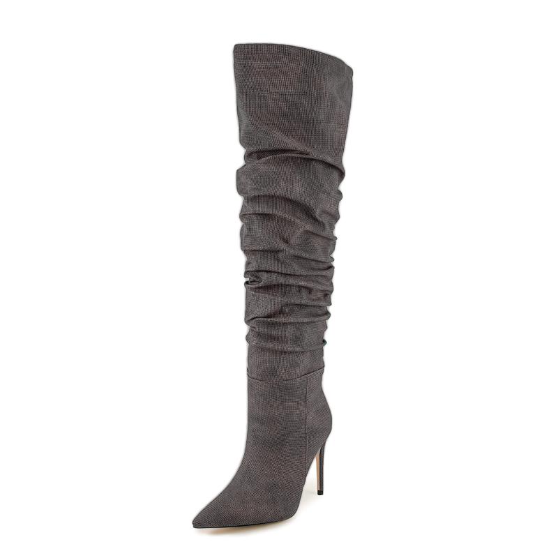 ブーツ レディース ニーハイ ポインテッドトゥ シャーリング ギャザー ハイヒール ピンヒール スキ・・・