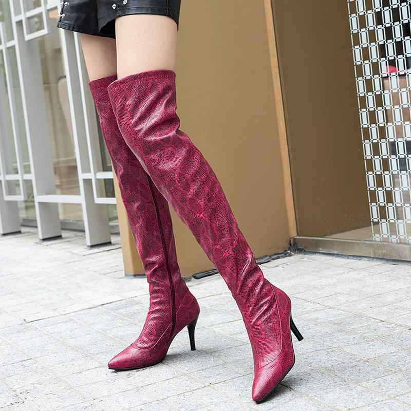 ブーツ レディース 海外トレンド セクシー ニーハイ丈 ポインテッドトゥ ピンヒール ヒョウ柄 蛇柄・・・