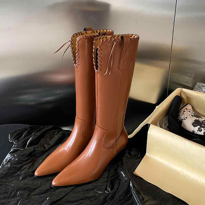 ファッションブーツ レディース ポインテッドトゥ 刺繍 ラインストーン サイドジップ ロング丈 ニー・・・