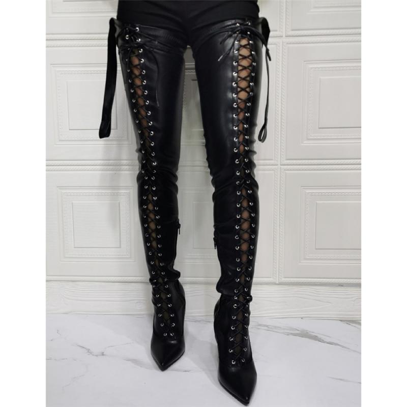 ブーツ レディース セクシー 欧米風 ファッションショー レースアップ ベルト付き ニーハイ 大きい・・・