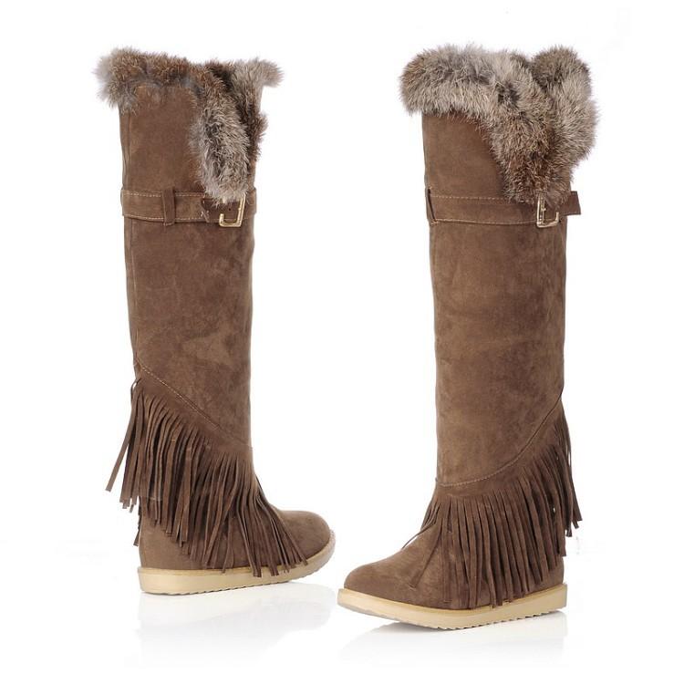 ブーツ レディース 欧米風 フリンジ スエード ラビットファー ローヒール 太ヒール ニーハイ 膝上・・・