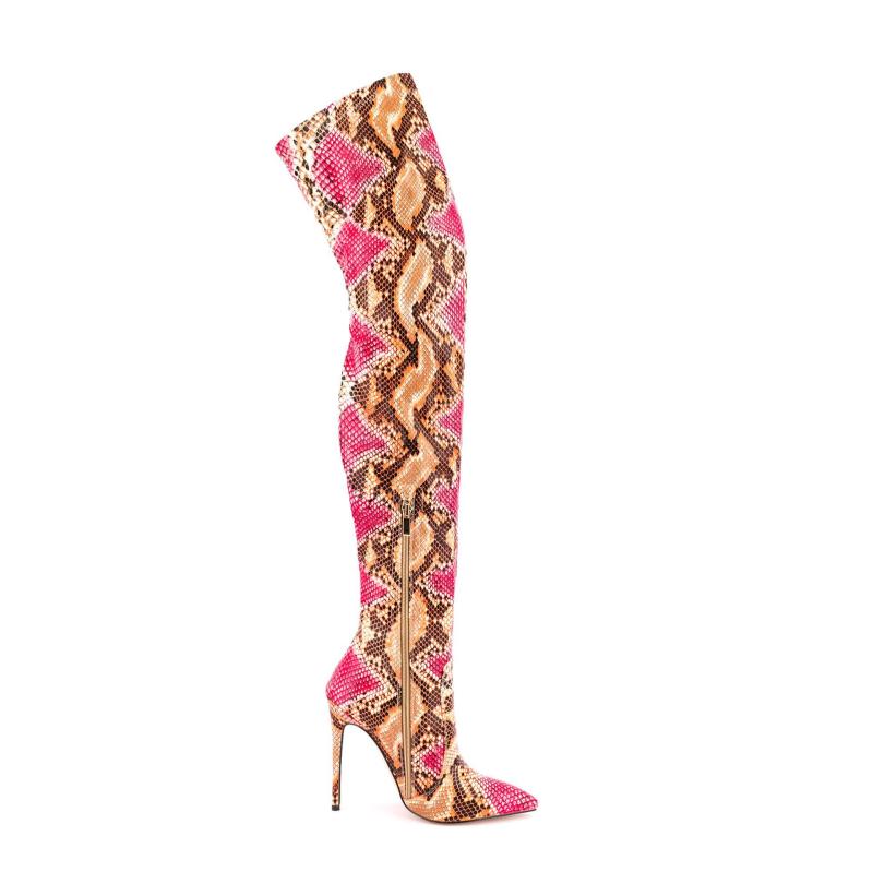 ブーツ レディース 欧米スタイル ニーハイ パイソン柄 細ヒール 超ハイヒール ポインテッドトゥ ス・・・