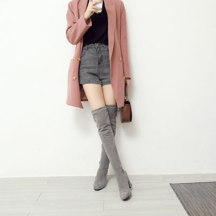 ブーツ レディース 秋冬 ニーハイ チャンキーヒール ポインテッドトゥ バックレースアップ スエード・・・