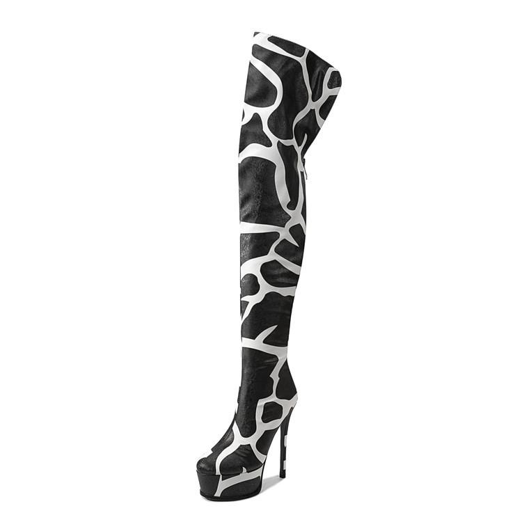 ブーツ レディース 海外トレンド セクシー ニーハイ丈 ポインテッドトゥ ピンヒール ヒョウ柄 蛇柄・・・