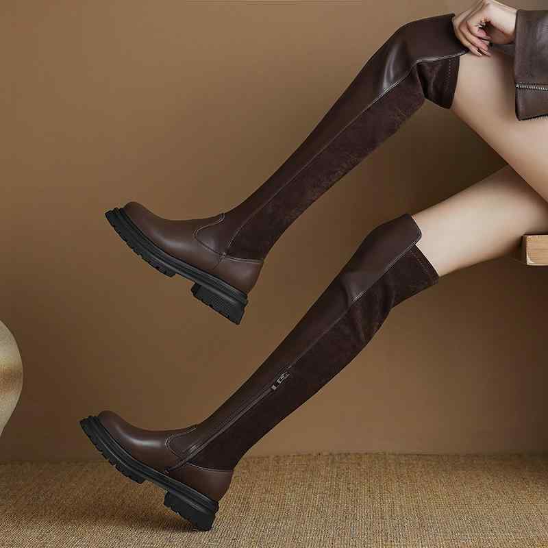 ブーツ レディース 女性用 厚底 ストレッチ ニーハイ ロングブーツ ラウンドトゥ チャンキーヒール・・・