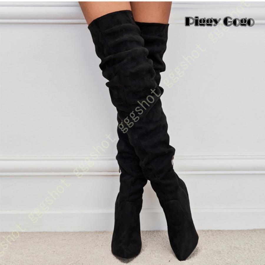 ブーツ レディース ポインテッドトゥ ピンヒール ハイヒール ニーハイ ストレッチ マイクロファイバ・・・
