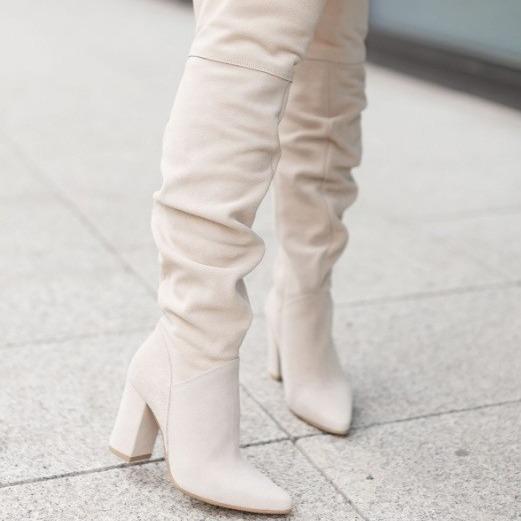 ブーツ レディース ニーハイ 太ヒール ポインテッドトゥ スエード調 ラバーソール カジュアル デイ・・・