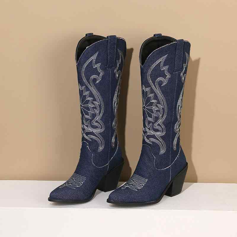 ファッションブーツ レディース 女性用 ロング丈 ニーハイ 太ヒール チャンキーヒール 刺繍 ステッ・・・