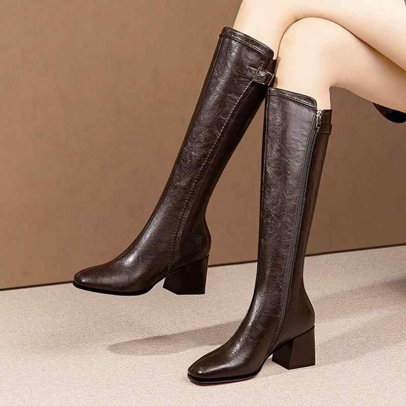 ロングブーツ レディース ニーハイ丈 太ヒール チャンキーヒール スクエアトゥ ハイヒール 脚長効果・・・
