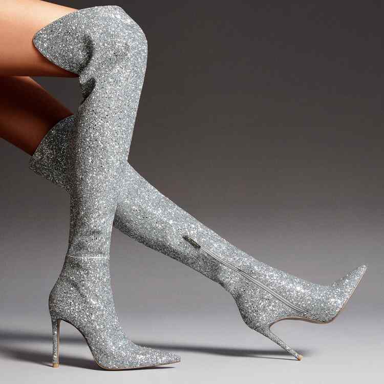 ファッション ロングブーツ レディース 欧米風 秋冬 グリッター ニーハイ スティレット ハイヒール・・・