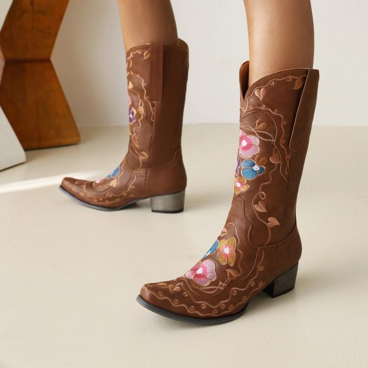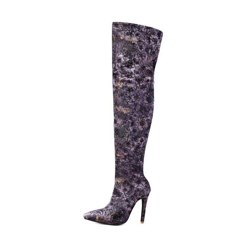 ロングブーツ レディース ニーハイ 太ヒール 保温 身長アップ 花柄 刺繍 ステッチ 欧米風 フェイ・・・