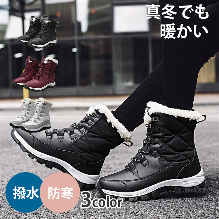 滑らない スノーブーツ レディース 北海道 雪靴 冬 防寒 暖かい 裏ボア 黒 ワインレッド ホワイ・・・