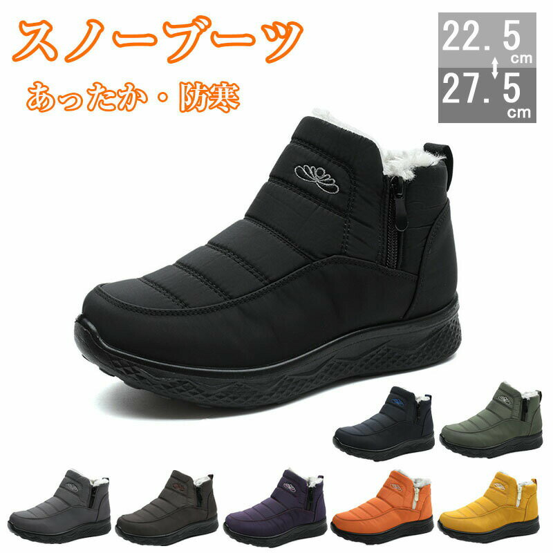 スノーブーツ メンズ レディース 滑らない 裏起毛 スノーシューズ ファスナー ムートンブーツ ボア・・・