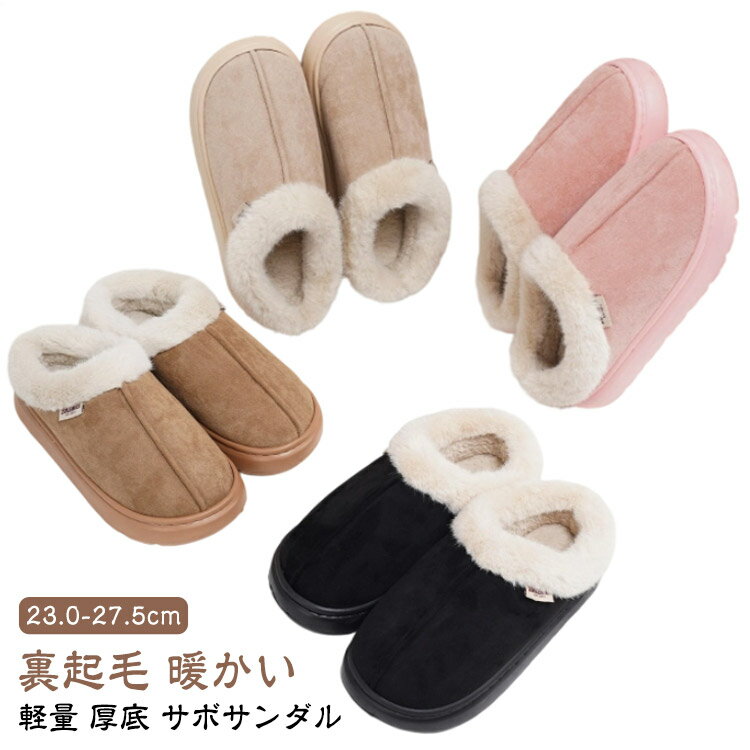 スリッパ サンダル 軽量 ムートン 裏起毛 サボサンダル スリッポン レディース メンズ ムートンス・・・