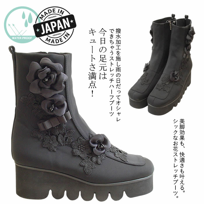 【3E 日本製】ストレッチブーツ 厚底ブーツ ショートブーツ レディース ミドルブーツ ストレッチブ・・・