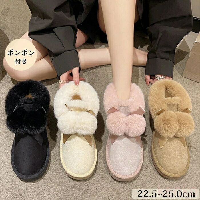 【送料無料】ムートンブーツ ボアブーツ レディース もこもこ ポンポン付き リボン 防寒 保温 3c・・・