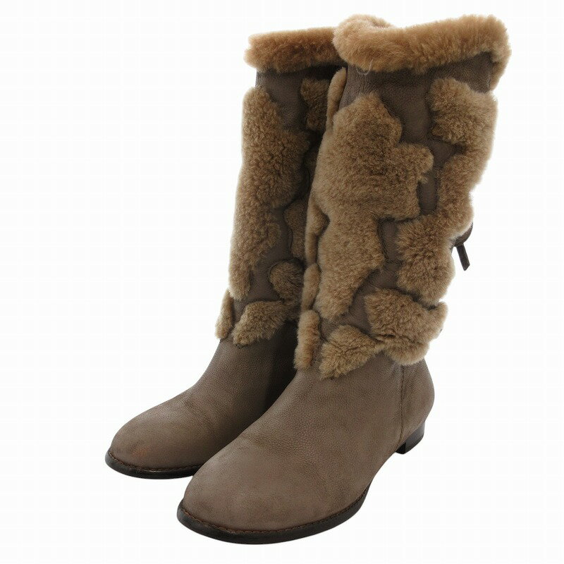 【中古】コブラ COBRA ムートンブーツ ロング レザー リボンデザイン 37 グレージュ /FF・・・