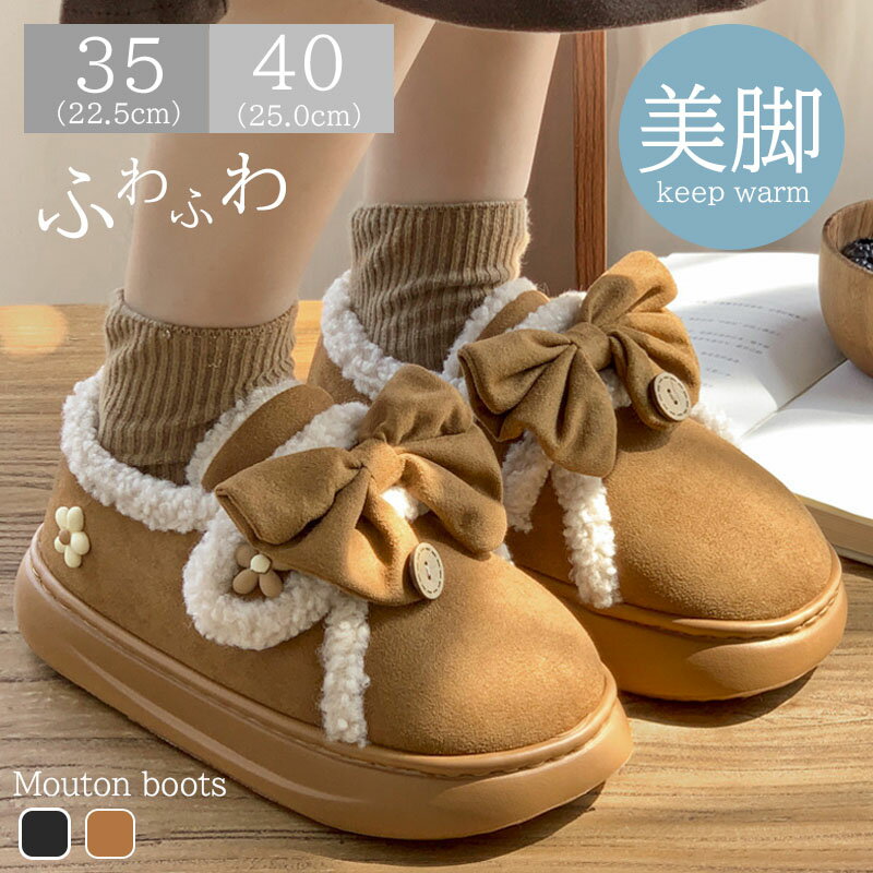 ムートンブーツ レディース 裏起毛 防寒 暖かい リボン ブーツ 保暖 軽量 歩きやすい カジュアル・・・