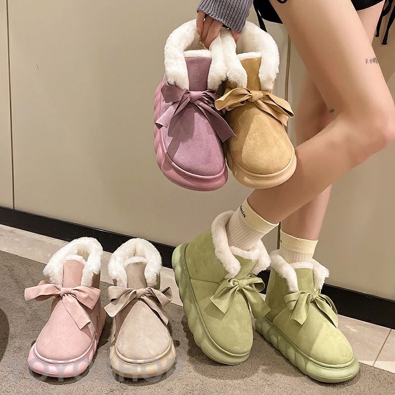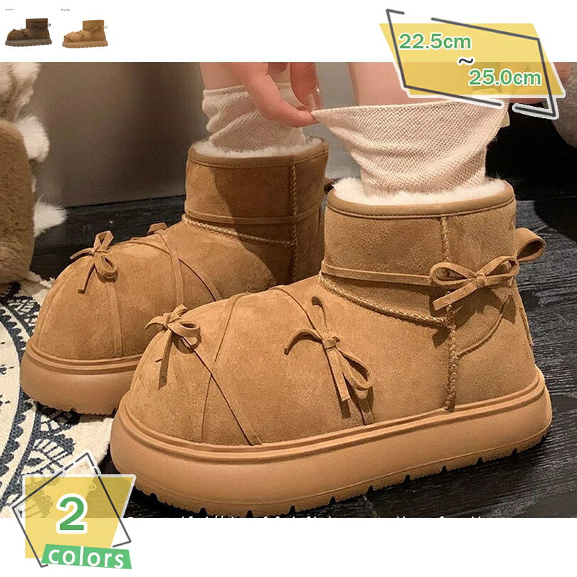 ピンク パープル グリーン ベージュ キャメル リボン ムートンブーツ レディース スノーブーツ ミ・・・