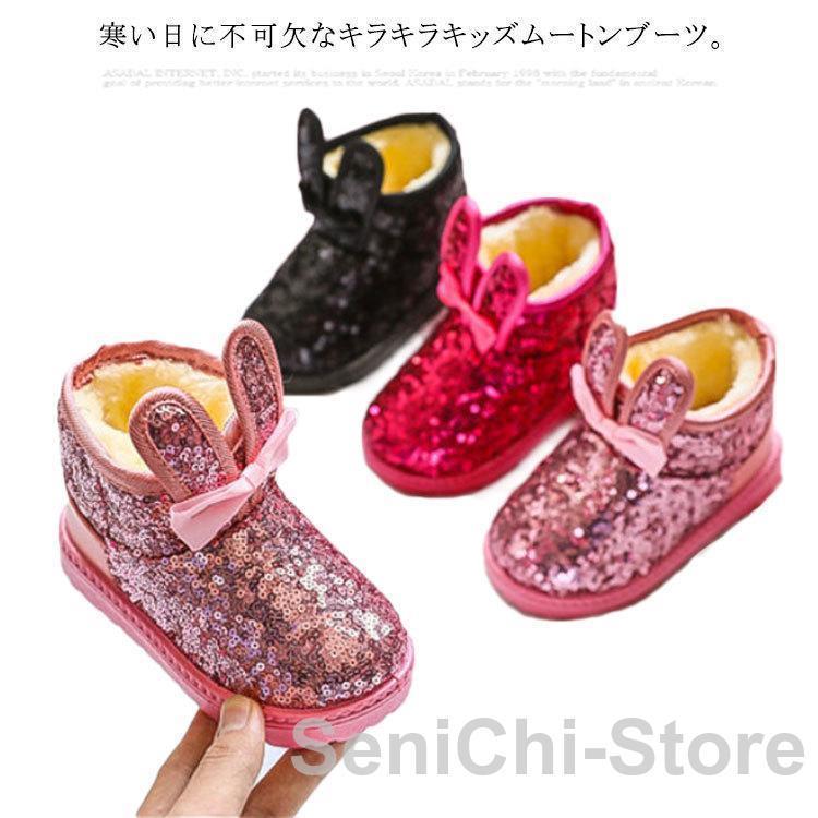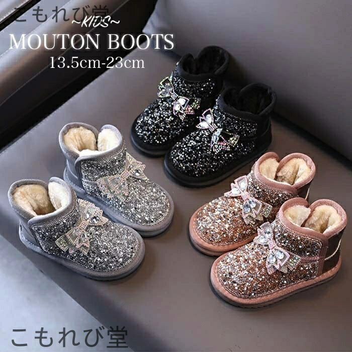 【送料無料】子供用ムートンブーツ ラメ リボン ふわふわ もこもこ 暖か 可愛い 女の子 ジュニア ・・・