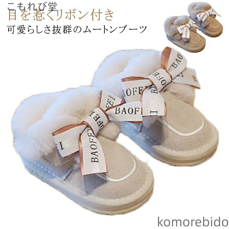 【送料無料】リボン付き 秋 キッズ 女の子 キッズムートンブーツ ムートンブーツ 冬 暖かい 防寒 ・・・