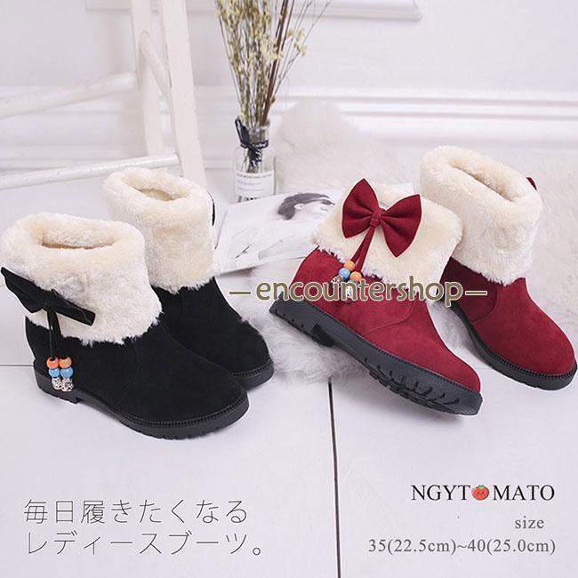 ムートンブーツ レディース ポンポン付き 蝶結び 裏起毛 もこもこ ファー付き リボン スノーブーツ・・・