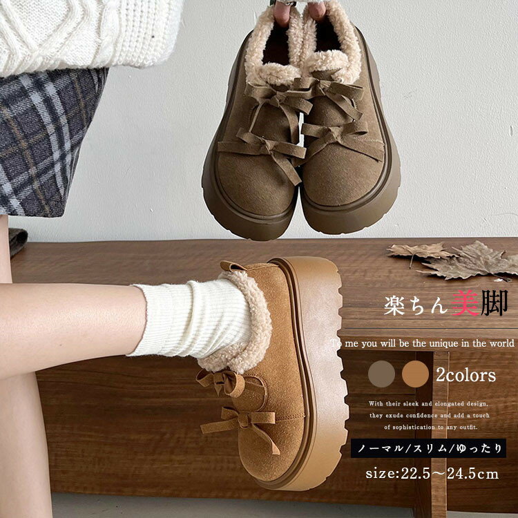 ムートンブーツ レディース フェイクファー リボン ファー フリル かわいい スエード調 裏ボア シ・・・