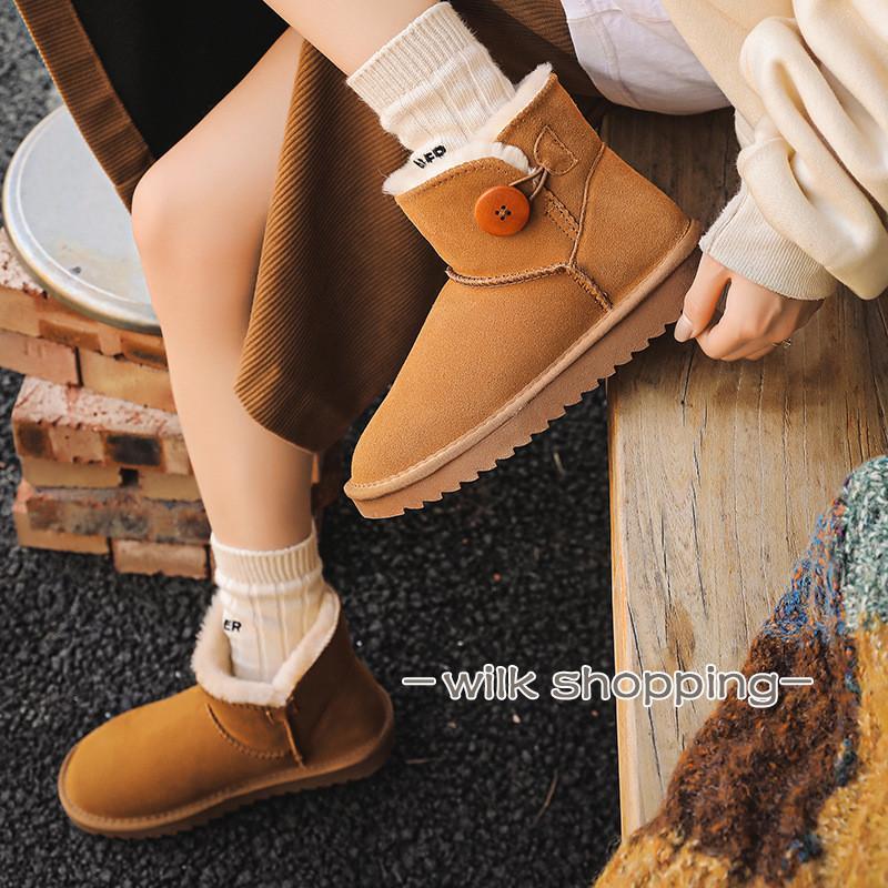 ムートンブーツ レディース ショート丈 裏ボア モカシン 保温 厚底 浅履き コットン素材 低ヒール・・・