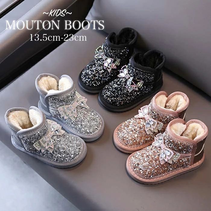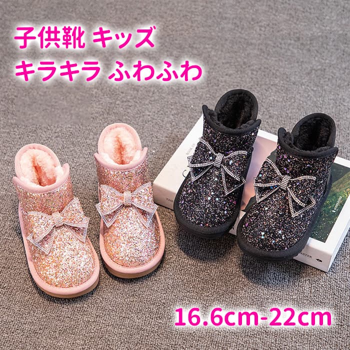 子供靴 キッズ ムートンブーツ ブーツ 女の子 キラキラ ジュニア ふわふわ リボン ピカピカ ショ・・・
