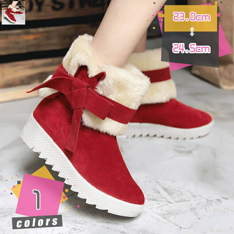 1000円OFFクーポン ムートンブーツ レディース スノーブーツ ショート丈 厚底 リボン 無地 ・・・
