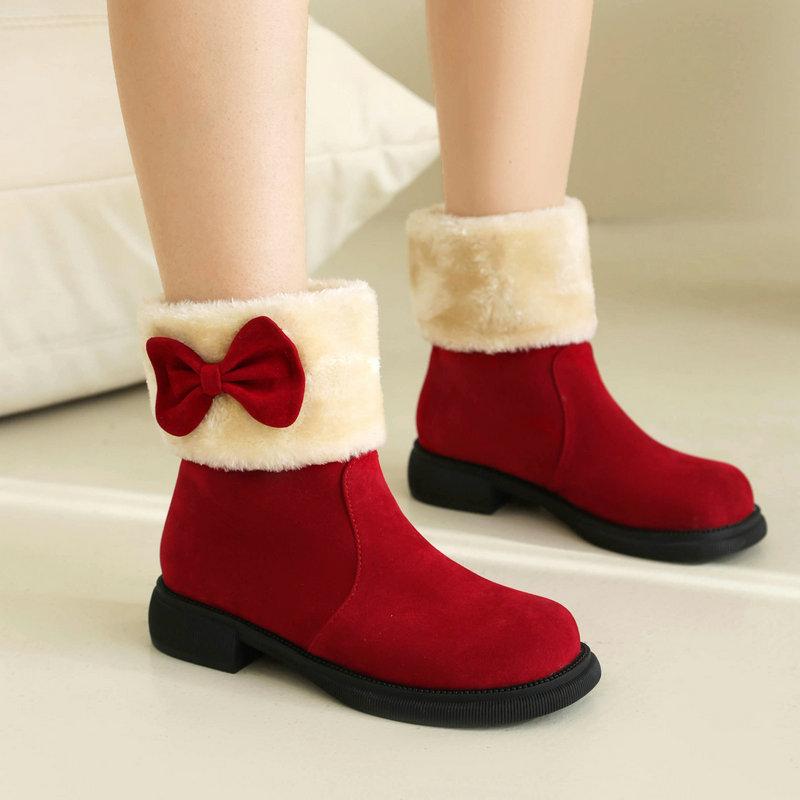 ショートブーツ レディース 防寒 スノーブーツ 裏ボア リボン付き あったか ムートンブーツ スエー・・・