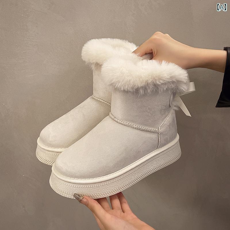 1000円OFFクーポン ムートンブーツ レディース スノーブーツ ショート丈 厚底 リボン 無地 ・・・