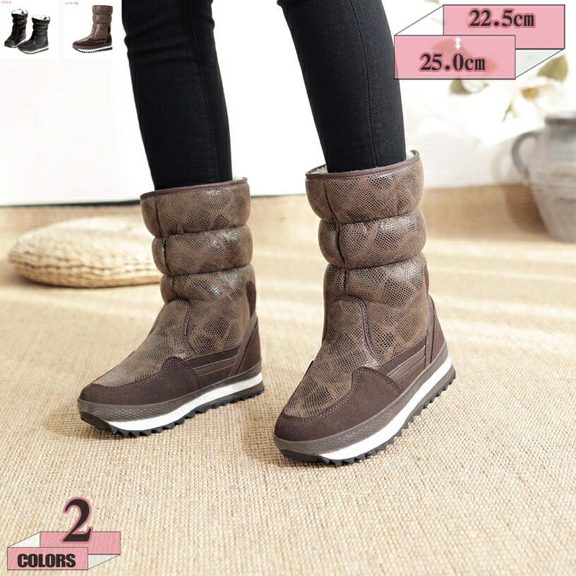 スノーブーツ レディース ロリータ かわいい リボン ファー ボア ショート丈 ミドル丈 チャンキー・・・