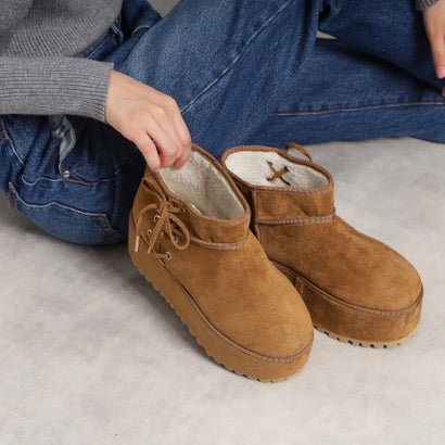 エスペランサ ESPERANZA 厚底レースアップリボンフェイクムートンブーツ (キャメルブラウン(・・・