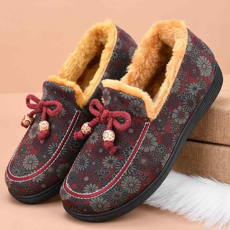 レディース 綿靴 冬 中高年 ママシューズ フラットソール 保暖 フリース ラウンドトゥ アンクル ・・・