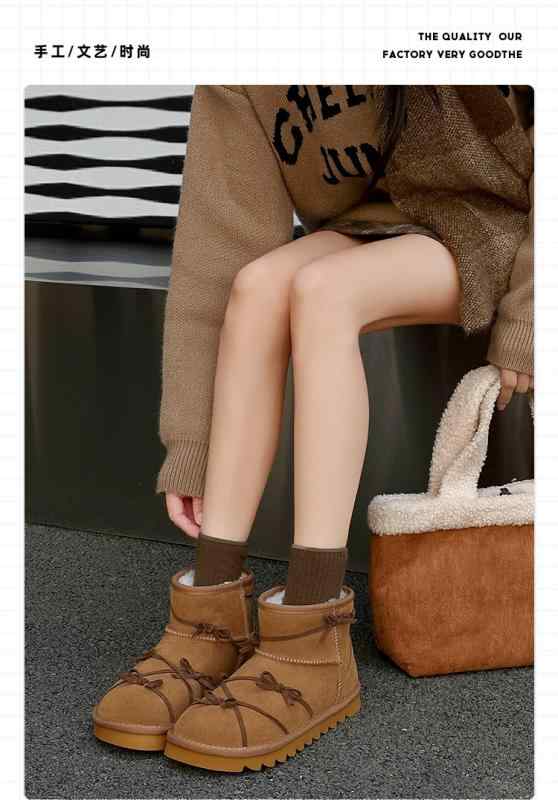 雪地ブーツ レディース 紐 リボン ショートブーツ 厚底 秋冬 スノーブーツ ファー 暖か 歩きやす・・・