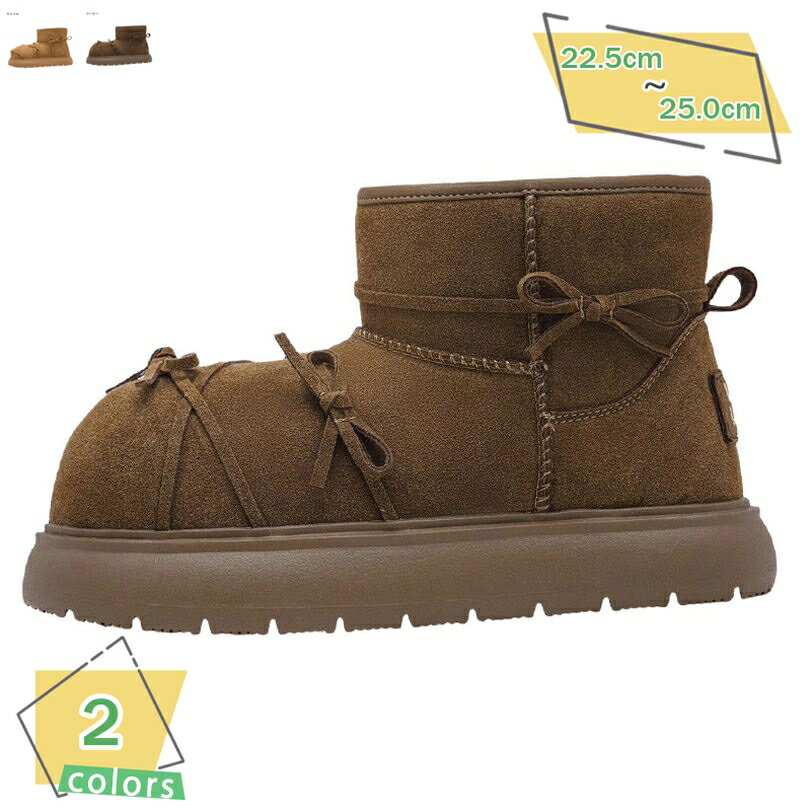 [17-24cm]【毎年人気NO.1/撥水加工/クッションインソール】リボン付フェイクムートンブーツ・・・