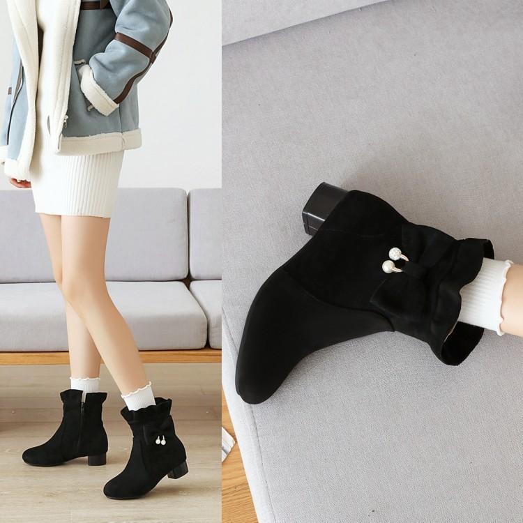 ショートブーツ レディース 太ヒール サイドジップ ラウンドトゥ リボン ブーティ 秋冬 大きいサイ・・・