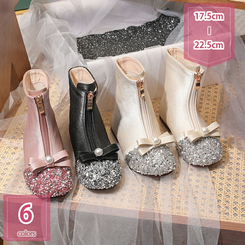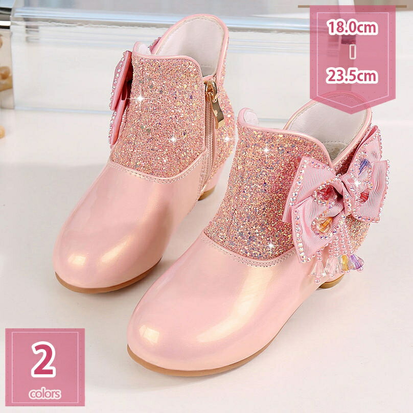 1000円OFFクーポン キッズ ブーツ 女の子 ヒール 歩きやすい かわいい ファー リボン 子供・・・