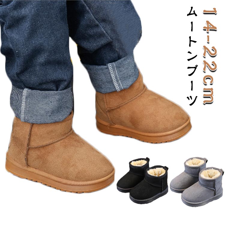 ムートンブーツ キッズ ショート こども 子供用 ブーツ もこもこ ボア ファー ふわふわ あったか・・・
