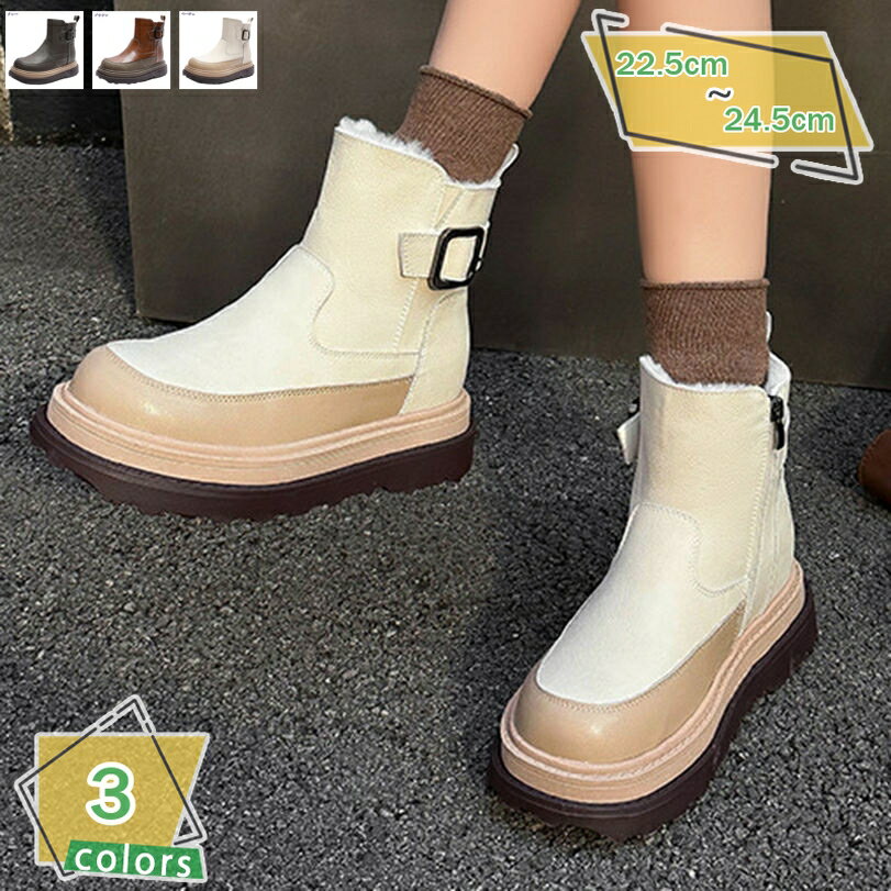 2000円OFFクーポン レディース ショートブーツ ミドルブーツ 厚底 スノーブーツ ラウンドトゥ・・・