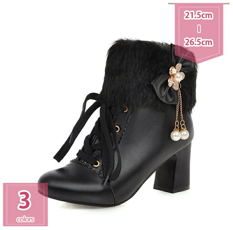 ショートブーツ レディース ブーツ ヒール 太ヒール ブーティー ファー 大きいサイズ 春ブーツ レ・・・