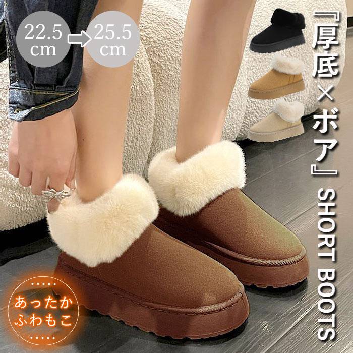 厚底 ムートンブーツ ショート ローヒール 痛くない 黒 ショートブーツ シューズ ブーツ 4.5c・・・